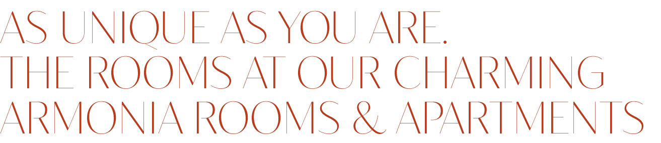 Armonia Rooms & Apartments offre camere ed appartamenti dal design moderno e minimalista, perfettamente climatizzati ed insonorizzati che garantiscono all’ospite il massimo della privacy e del comfort.
